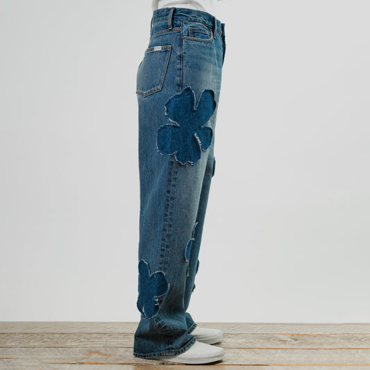 Flower Bleached Denim Pants (61281)